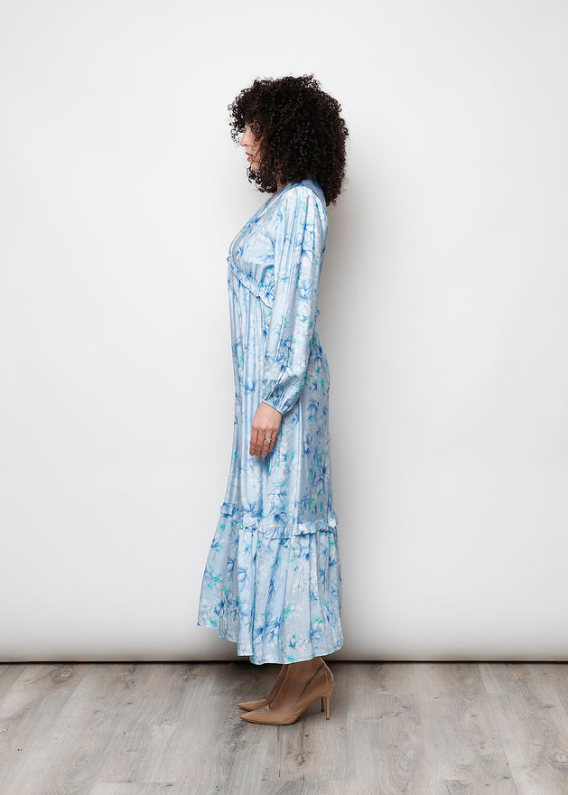 Vestido Maxi Floral Azul – Elegancia y Frescur