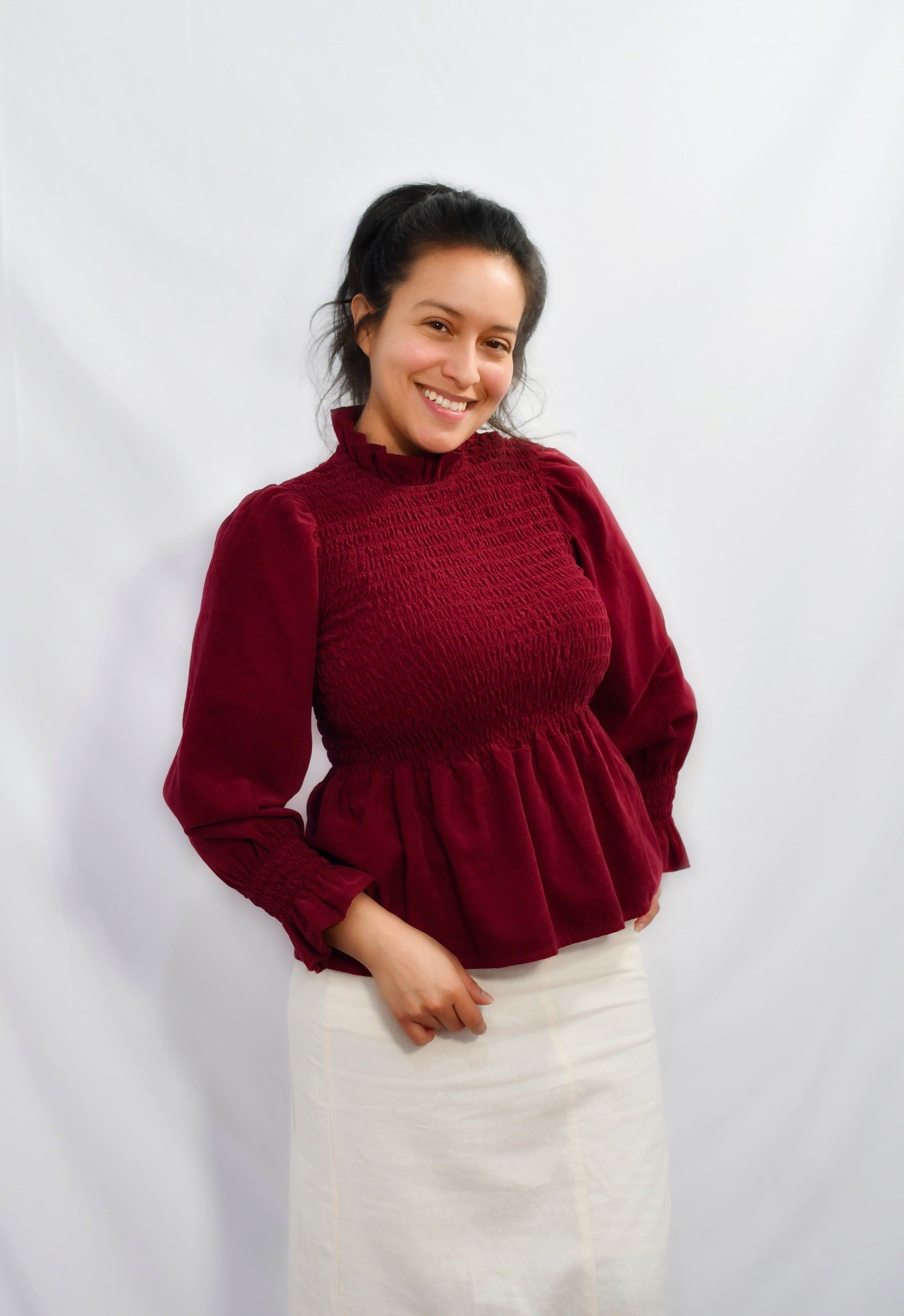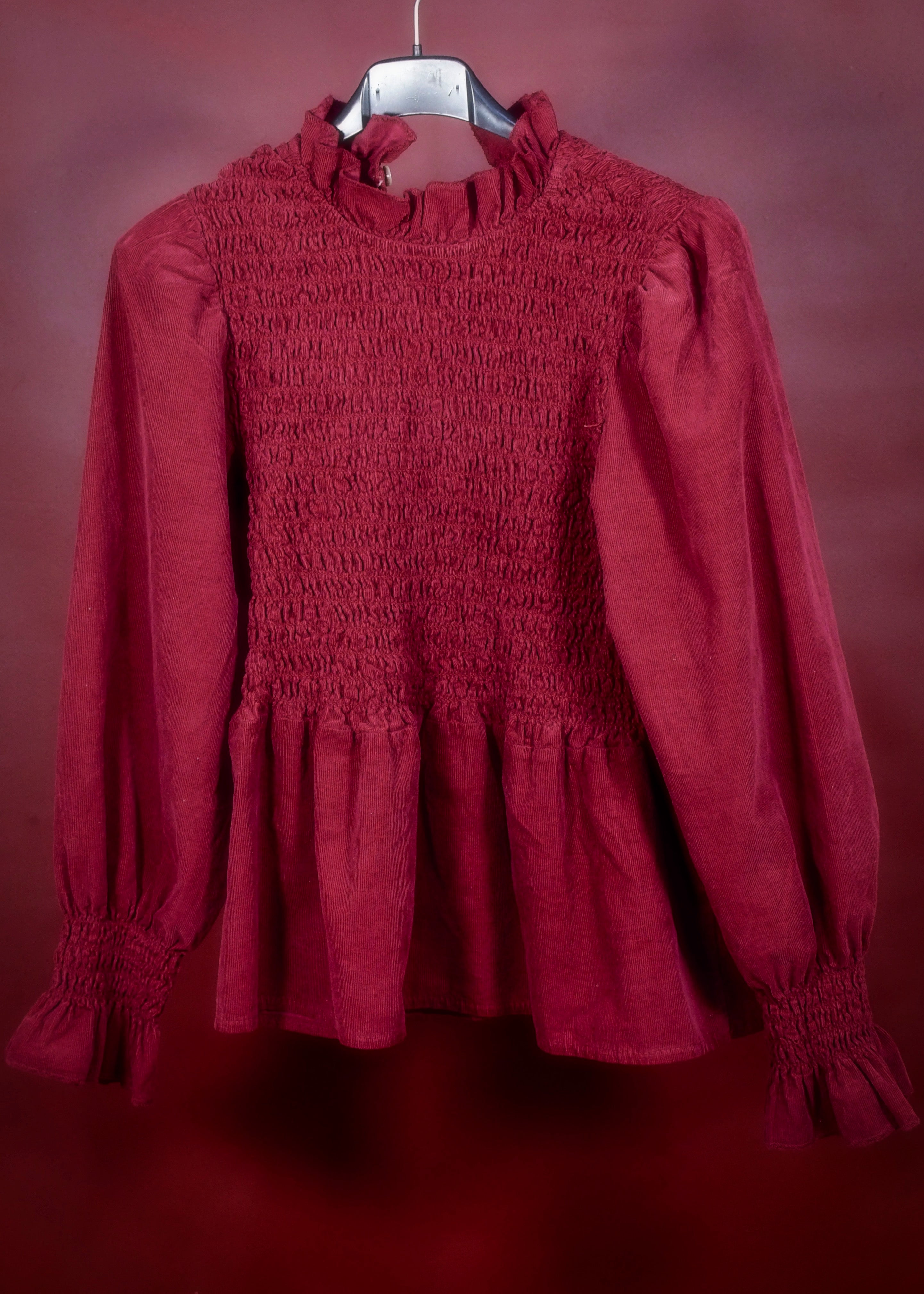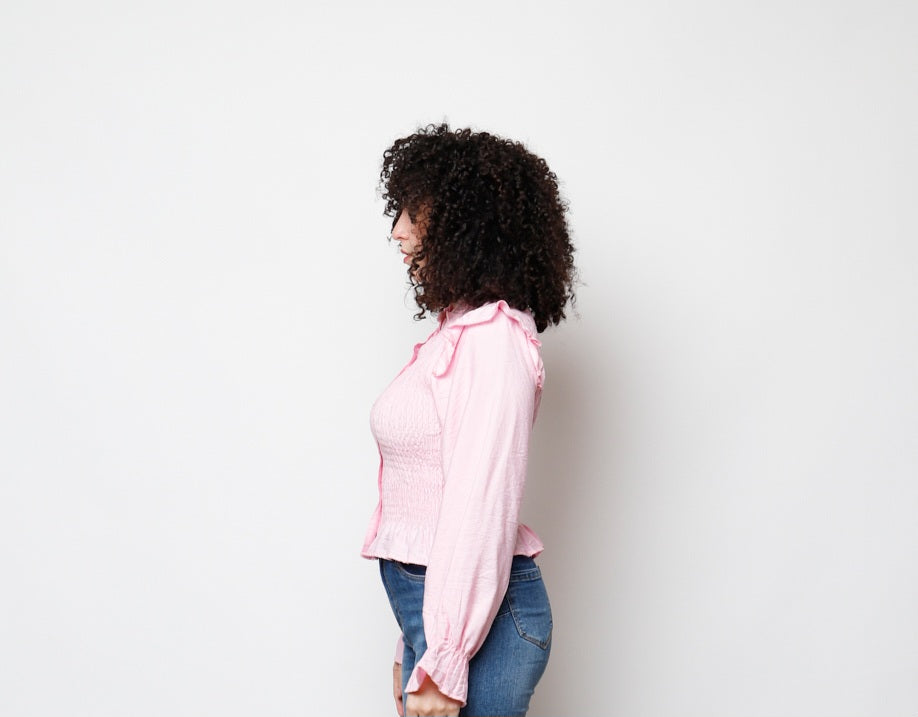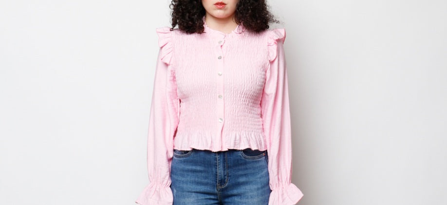 Blusa rosa con textura fruncida y volantes AGOTADO