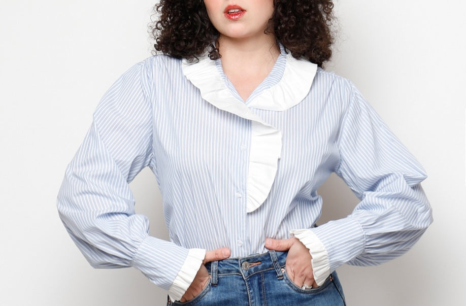 Blusa de rayas con volantes y cuello babero AGOTADO