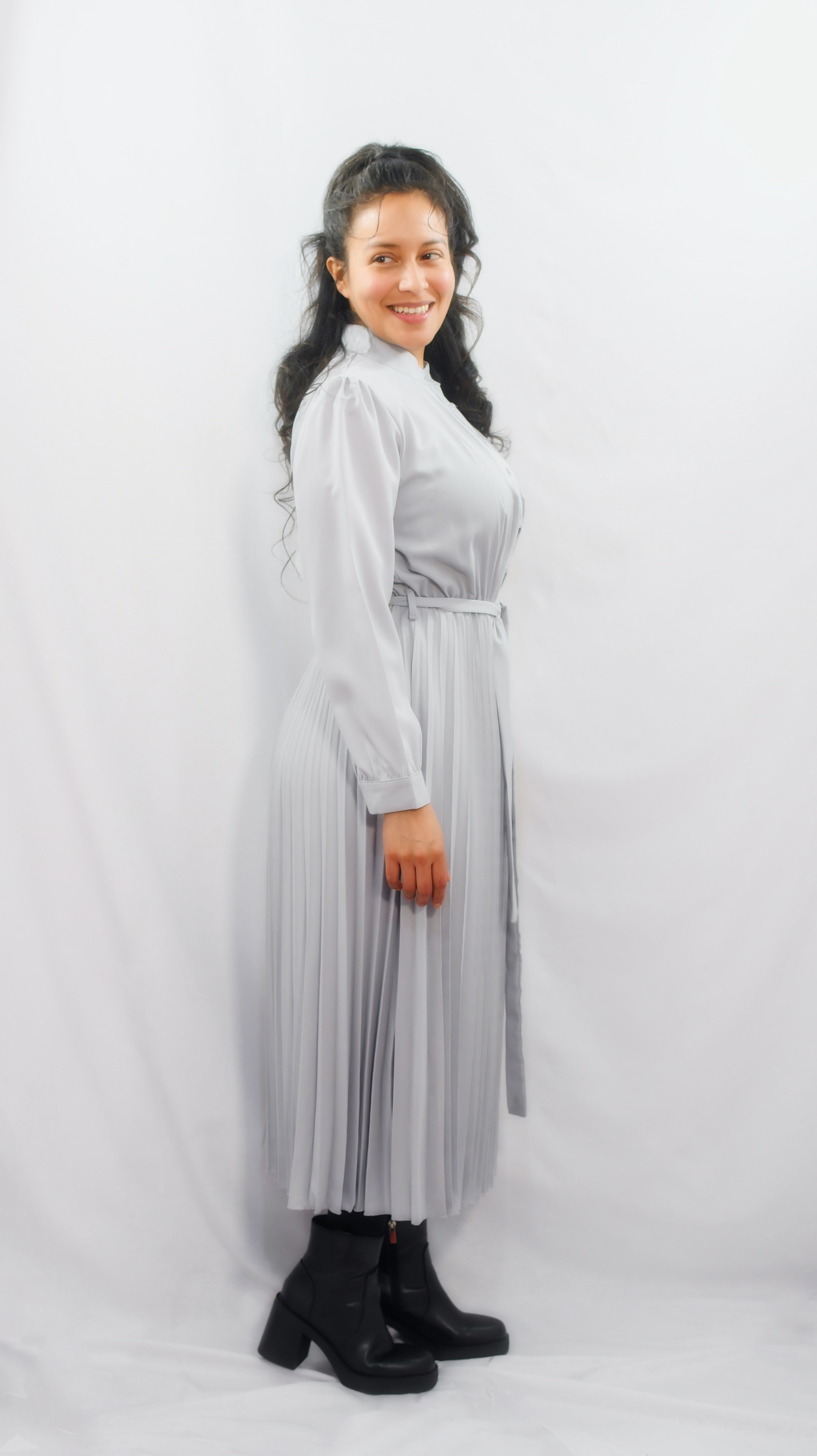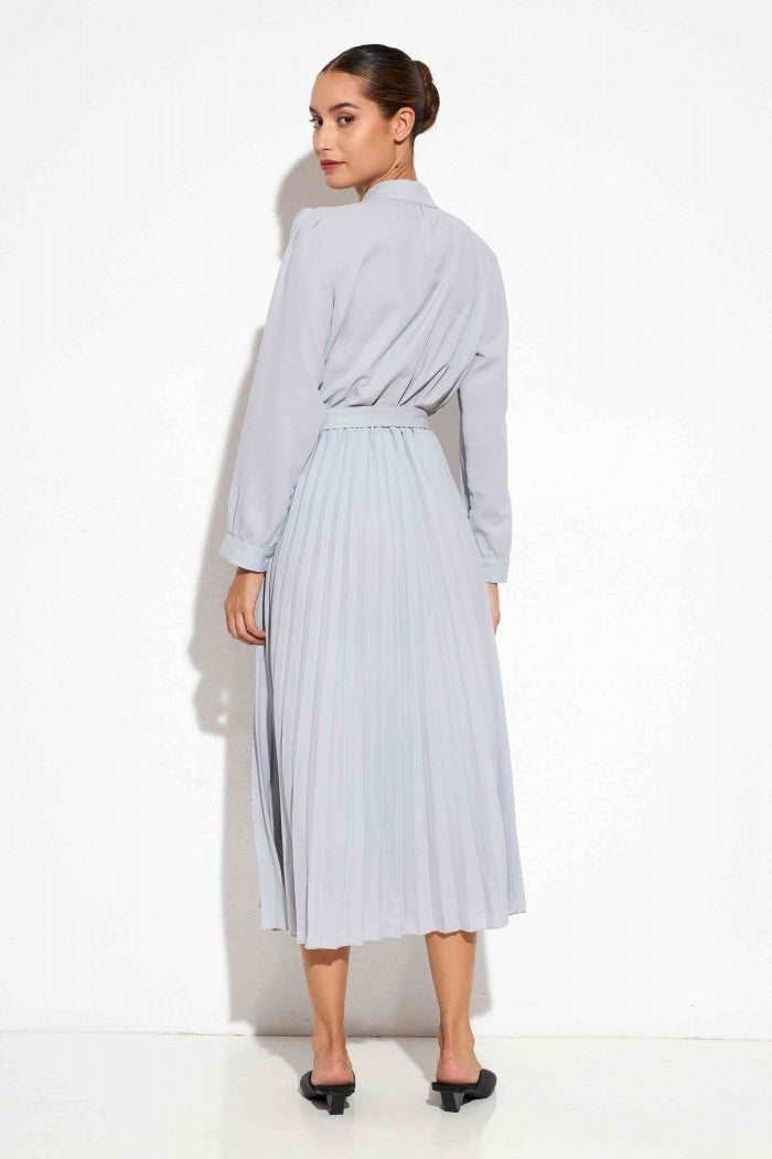 Vestido Camisero Plisado en Tono Gris suave AGOTADO