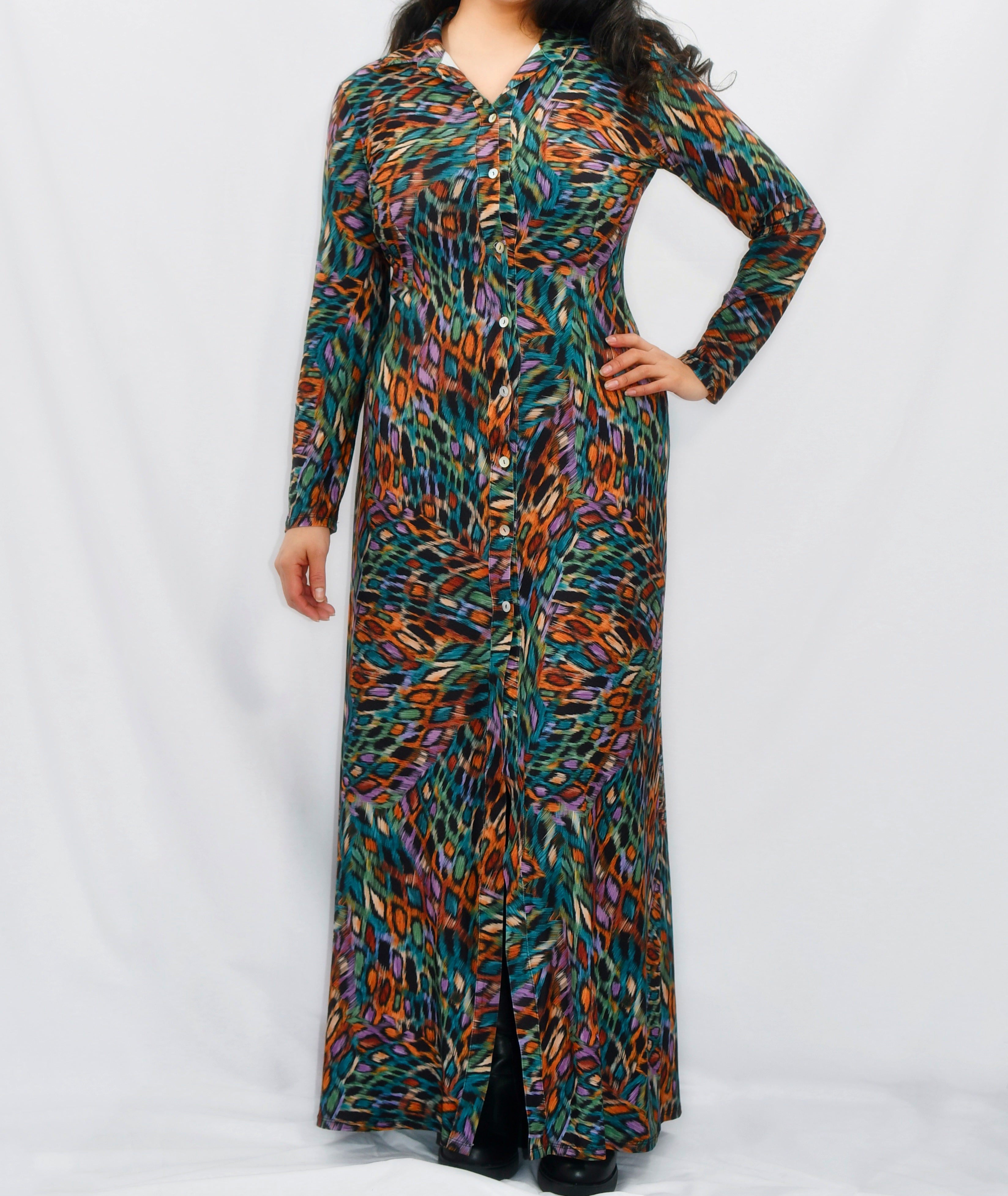 Vestido camisero estampado vibrante