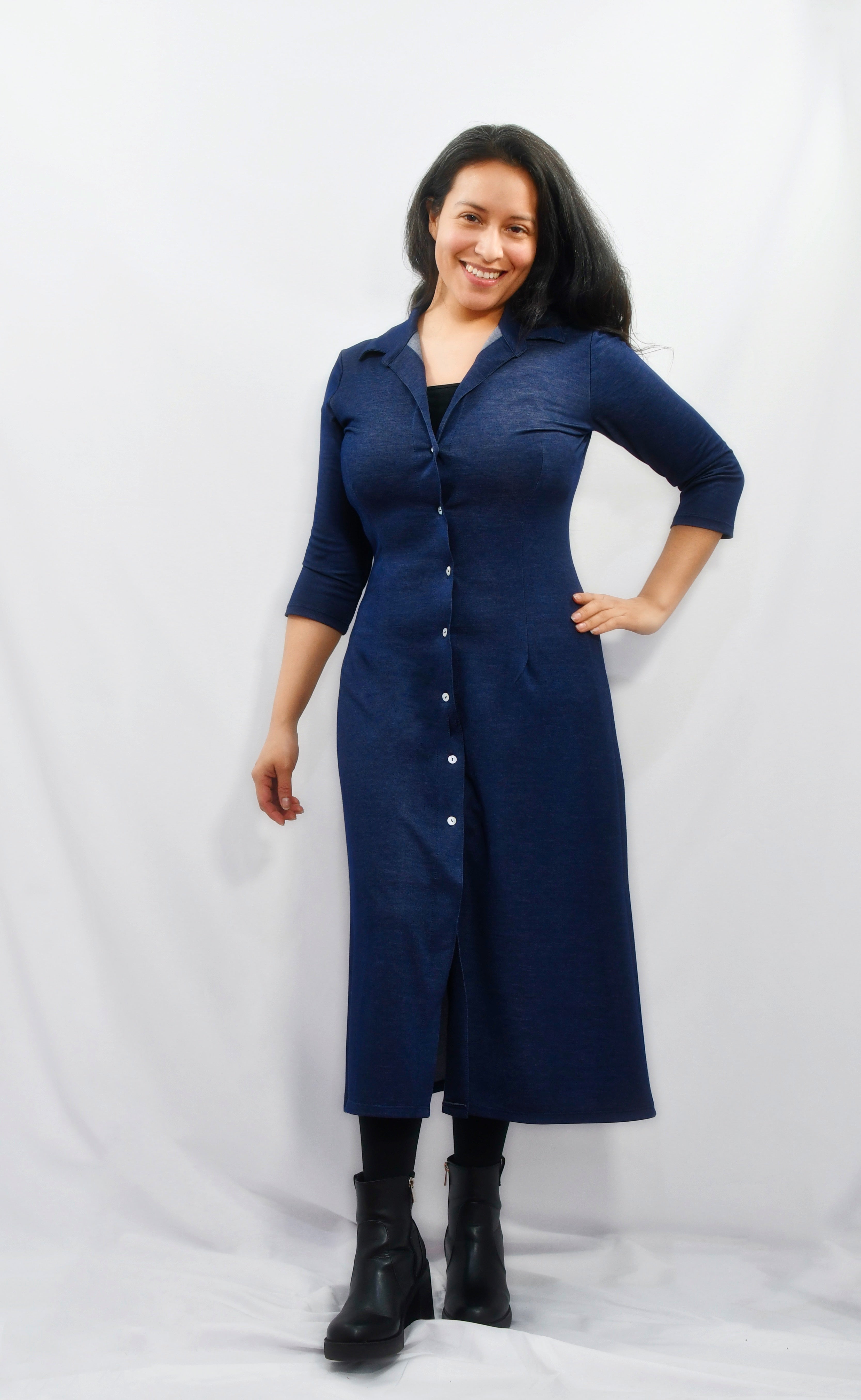 Vestido camisero Jeans Largo Midi de manga tres cuartos AGOTADO