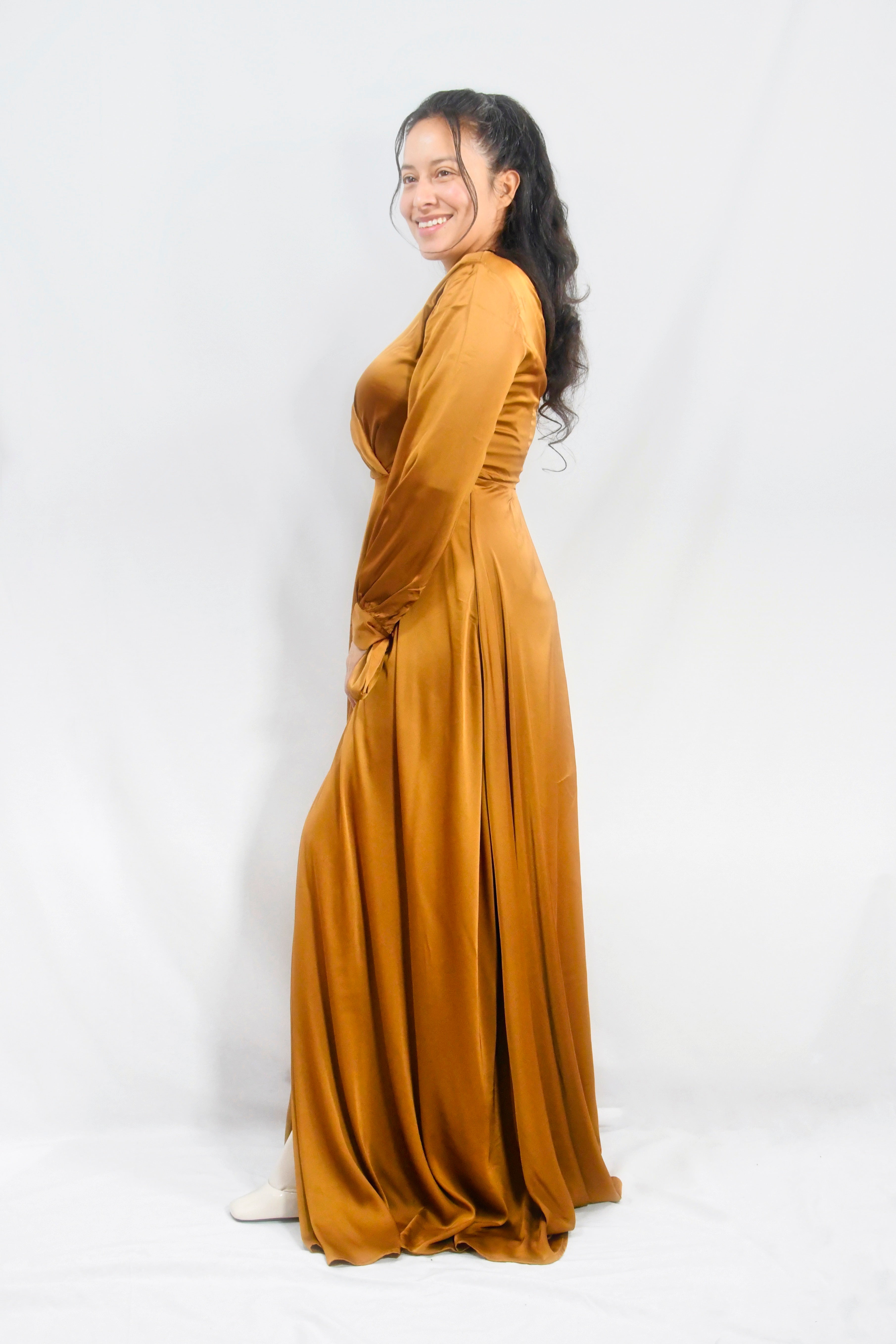 Vestido dorado de gala con mangas largas AGOTADO