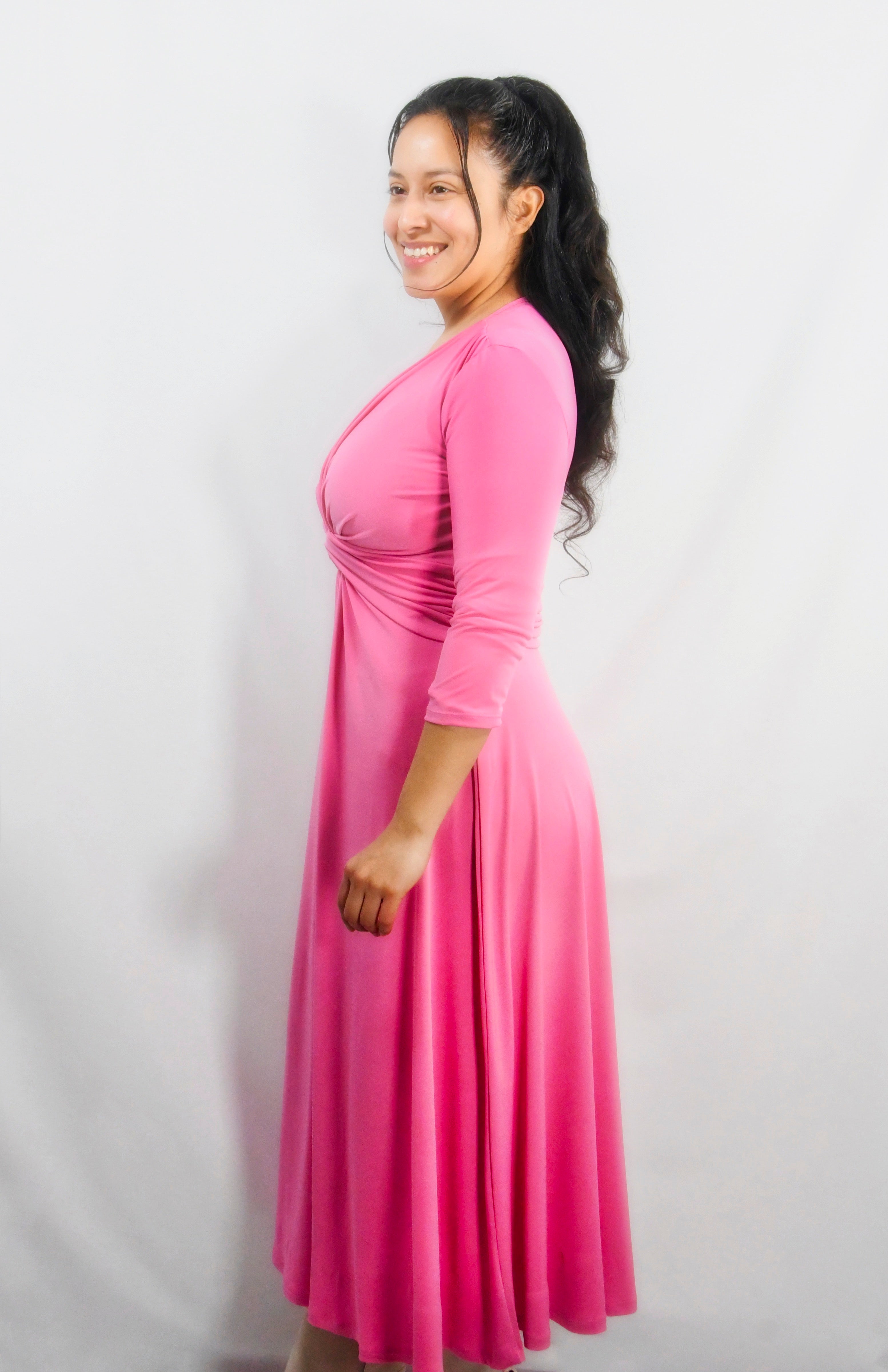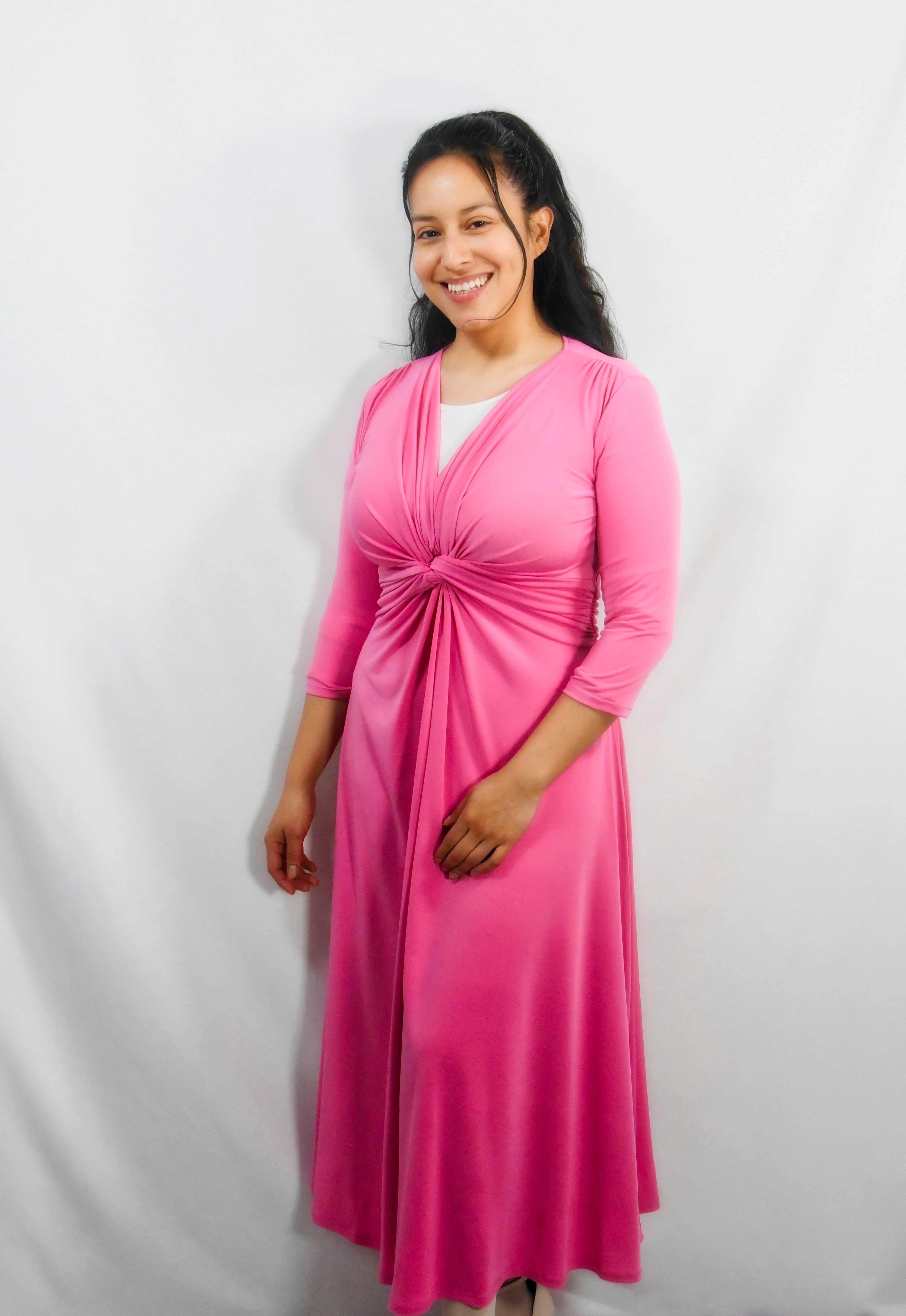 Vestido nudo MIDI liso rosa