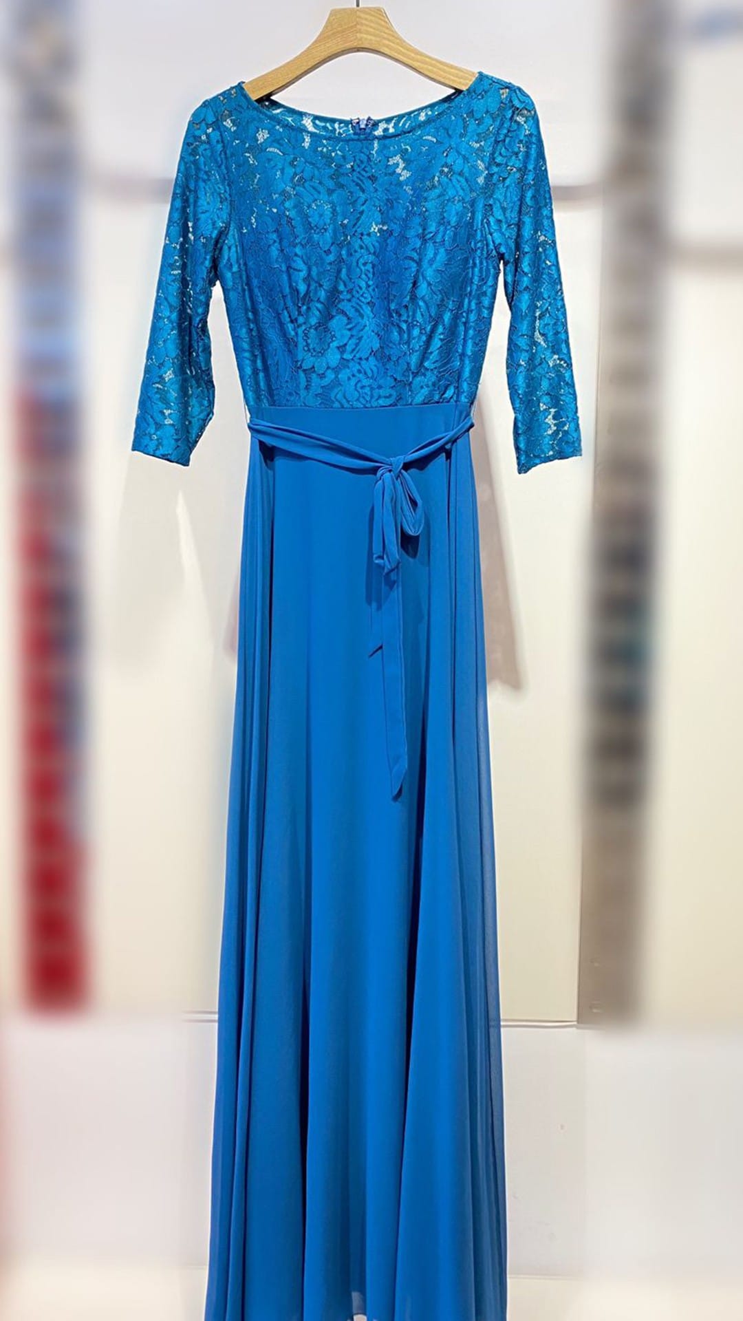 Vestido Largo de Gasa con Encaje en Azul Royal